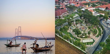 Potret nelayan dan jembatan Suramadu yang menghubungkan Madura-Surabaya. Sumber: Instagram @potretmadura
