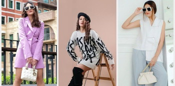 Tumpuk oversized kemeja putih dengan knit vest abu-abu, lalu tambahkan belt hitam. Tak lupa sling bag dan heels berwarna putih jadi sentuhan manis terakhir.