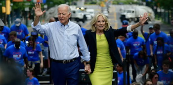 Biden tampil di panggung Konvensi Nasional Demokrat 2016 dengan gaun putih sleeveless. Dirinya mengenakan gaun putih dengan garis-garis halus dan sepatu pumps yang serasi.