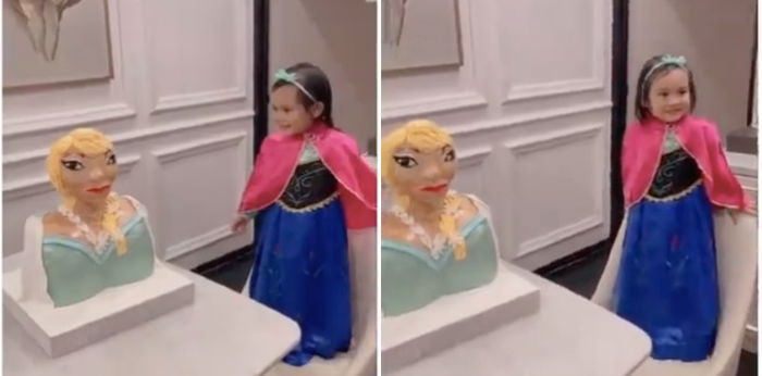 Rupanya, Sada justru menyukai kue Elsa Frozen yang tampak penyok dan terus menerus menagih kue tersebut!