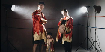Foto hamil artis Putri Titian bersama keluarga kecilnya dengan tema Kick Boxing