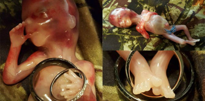 Foto janin gugur di usia 14 minggu ini membuktikan bahwa dia telah berbentuk manusia.