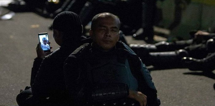 Pasca pengumuman hasil Pilpres 2019 situasi di Jakarta memang kurang kondusif. Terjadi aksi demo di beberapa titik di Jakarta, terutama di depan kantor pemerintahan seperti KPU dan Bawaslu. Bahkan, pada hari Rabu (22/5) dini hari, terjadi kerusuhan akibat massa pendemo yang tidak mau dibubarkan oleh aparat. Namun, di tengah kondisi mencekam akibat demo yang rusuh, beredar gambar polisi sedang bertugas yang mampu buat warganet terenyuh.