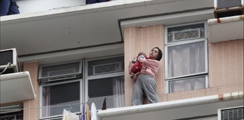 Baru-baru ini, seorang ibu dengan menggendong bayinya mengancam akan lompat dari lantai 40 di Hong Kong.