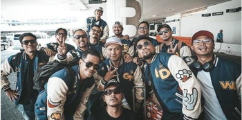 The Prediksi dikenal selalu mengenakan kostum seragam dan unik. Kali ini ke-13 anggota The Prediksi pun memakai jaket seragam untuk bersiap-siap menempuh perjalanan jauh ke Amerika Serikat. Kira-kira seperti inilah gaya mereka di bandara sambil menunggu pesawat yang akan ditumpanginya.