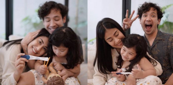 Dalam postingan Instagram, Tarra, Gya, dan putri pertama mereka berpose sembari tersenyum. Mereka juga menunjukkan hasil test pack yang menunjukkan tanda positif.