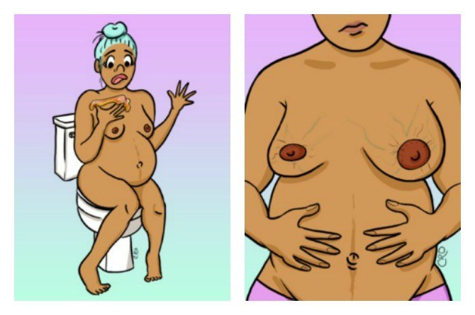 9. Garis-garis yang muncul di payudara dan perut membuatnya seperti tato kehamilan.