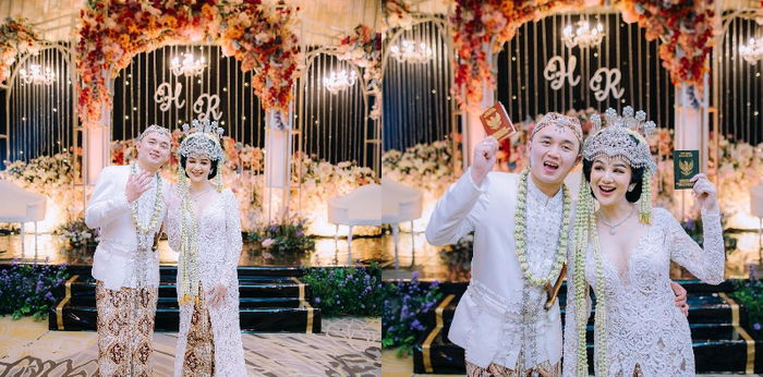 Di hari bahagianya, Hana terlihat menawan dengan busana adat Sunda. Dalam potretnya, Hana Hanifah memakai kebaya putih dan siger sunda. Sedangkan sang suami mengenakan baju pengantin yang serasi dengan Hana.