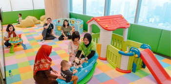 Terdapat bermacam mainan di Kids Room hingga penjaga khusus agar orangtua dapat tetap memiliki waktu berkualitas dengan anak sambil bekerja. Seru ya!