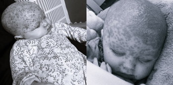 Bayi bernama Oarlah mengalami herpes di seluruh kepala dan keningnya