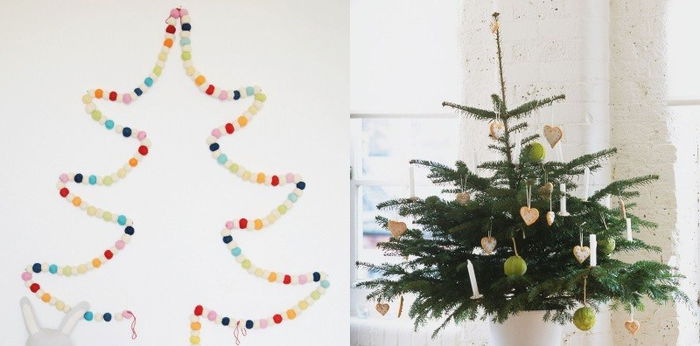 Pohon Natal tidak harus menggunakan pohon. Desainer Rubyellen Bratcher dari Cakies dan menawarkan ide pohon natal dengan bentuk ikonik dari karangan bunga. Ide ini menawarkan banyak keceriaan dan mengurangi kekhawatiran anak-anak akan merobohkan pohon konvensional.