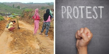 Sekitar 45 orang perempuan memilih melakukan protes bahkan hingga melepas pakaian sebagai bentuk perlawanan terhadap aksi perusahaan yang menggusur pondok dan kebun petani. Peristiwa tersebut terjadi di Jambi.
