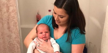 Marissa berdiri sambil berpegangan pada rak handuk di kamar mandi, dan mendorong satu kali lagi sebelum akhirnya bayi laki-laki yang ia nantikan lahir dengan selamat. Suaminya yang setia menemani segera saja mengambil foto-foto.