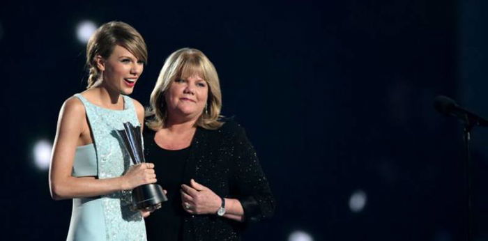 Taylor Swift bersama sang ibu saat menerima penghargaan pada 50th Academy of Country Music Awards in 2015 (source : Huffppost)