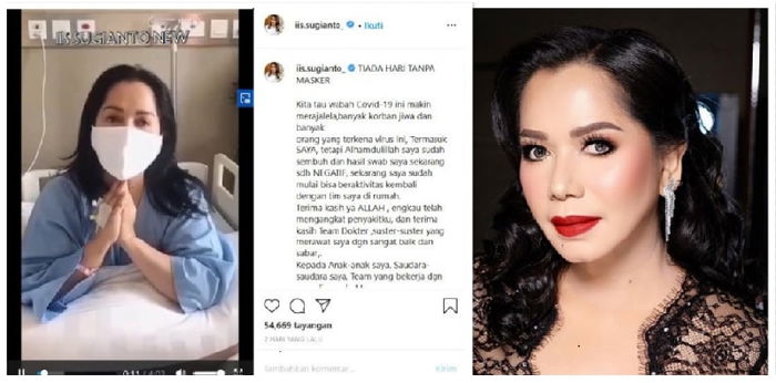 Keberhasilan Iis Sugianto sembuh dari Covid-19, ceritanya ia unggah di Instagram, Jumat (11/9/2020).