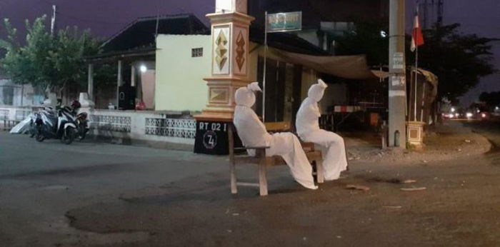 Pocong berjaga agar warga mau melakukan isolasi mandiri untuk mencegah Covid-19