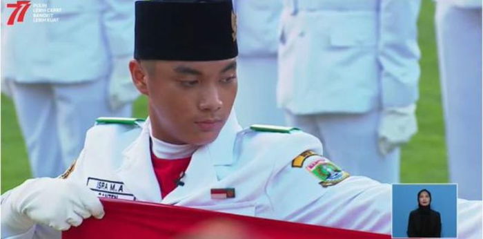 Bikin netizen salah fokus di Upacara Penurunan Merah Putih, inilah 9 foto Isra Mashel anak Sandy Arifin yang menjadi Paskibraka Nasional 2022.