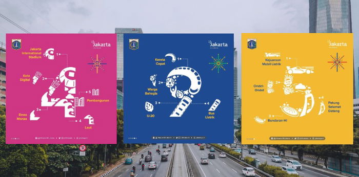 Pada angka 4, terdapat ikon Jakarta International Stadium (JIS), ada ikon Jakarta sebagai kota digital, ikon pembangunan, ikon emas monas dan ikon laut.