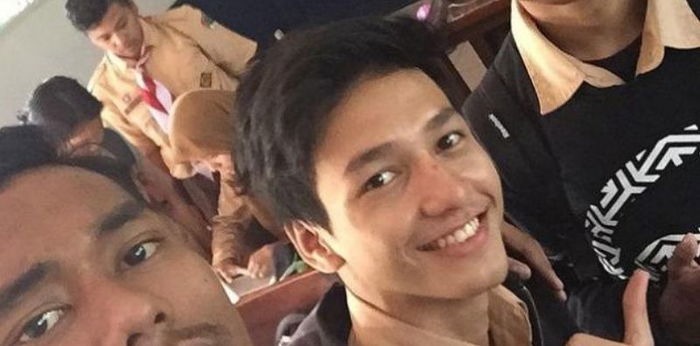 Dengan gaya rambut jambul yang hits pada jamannya, pria yang lahir tanggal 15 Januari 1999 ini menatap tajam arah kamera.
