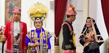 Sedangkan, sang istri, Iriana yang juga hadir saat itu tampil menggunakan pakaian adat Tapanuli Utara dari Sumatera Utara.