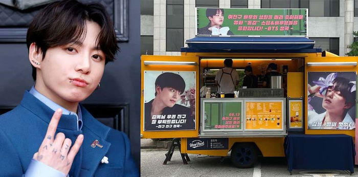 Di dalam video, bertuliskan, “Setelah latihan, truk camilan kejutan teman Jungkook, Yeo Jin Goo, menunggunya di depan ruang tunggu.” So sweet.