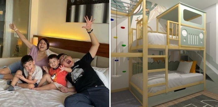 Kamar tersebut juga bisa ditempati untuk 2 anak sekaligus. Tya memanfaatkan dipan bertingkat sebagai tempat tidur kedua jagoan kecilnya.
