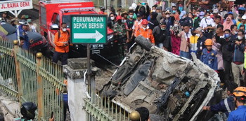 Tembok pembatas juga harus dibongkar di beberapa bagian untuk mempermudah proses evakuasi. Setelah sekitar dua jam, minibus akhirnya berhasil dievakuasi dari lintasan KRL di palang pintu kereta manual Rawageni, Kecamatan Cipayung, Kota Depok.