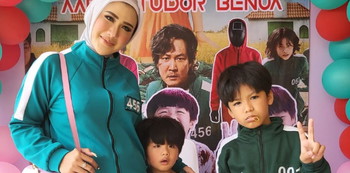 “Dia, kan, lagi suka Squid Games. Jadi, dari kostum sampai goodie bag (tas hadiah) temanya itu,” kata Rey Utami.