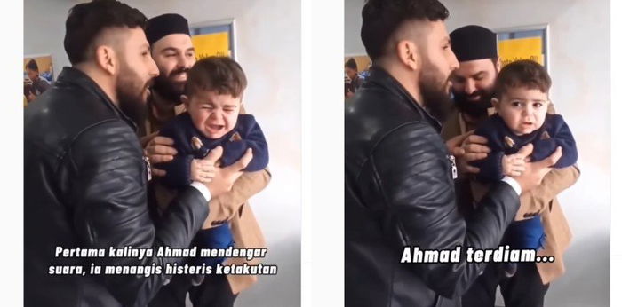 “Pertama kalinya Ahmad mendengar suara, ia menangis histeris ketakutan,” begitulah tertulis dalam video.