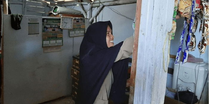 “Bekas WC jadi tempat masak, kalau tidur di samping WC, ada ruangan dibangun dari bantuan dari kepala sekolah,” ujar Nining.