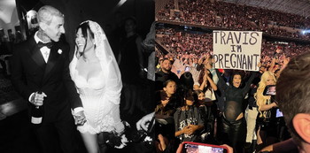 Sesaat kemudian, Travis mulai menguasai dirinya dan mencari jalan untuk turun dari panggung. Begitu berhasil, ia langsung menghampiri wanita 44 tahun tersebut, kemudian merengkuh dan mengecupnya.