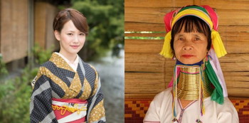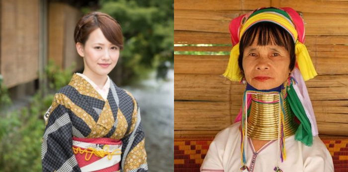 Orang Myanmar juga menganggap leher panjang sebagai simbol kecantikan dan kesejahteraan. Para perempuan di suku Kayan Lahwi mulai memakai kalung kuningan itu sejak usia lima tahun.
