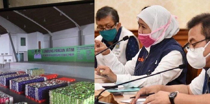 Saat konferensi pers di Gedung Negara Grahadi Surabaya, Minggu (19/4/2020) malam, Gubernur Khofifah mengungkapkan bahwa Lumbung Pangan Jatim disediakan bagi masyarakat yang terdampak sosial ekonomi pandemi Covid-19.