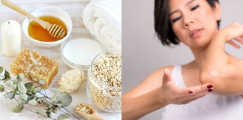 Campurkan 1 sendok makan yogurt dan 1 sendok makan oatmeal dalam mangkuk kecil dan aduk rata. Berikan beberapa tetes madu, aduk hingga larut. Oleskan dan diamkan selama 10 menit. Bilas dengan air hangat.