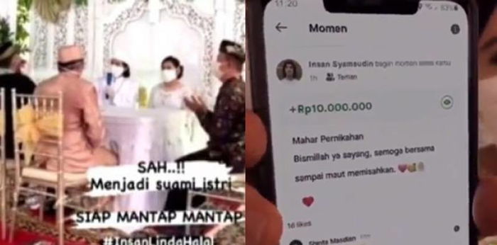 “Saudara Insan Syamsudin bin Jaelani, saya nikahkan dan kawinkan engkau dengan saudari Linda Novianti binti Abdul Munif dengan mas kawin berupa saldo Gopay sejumlah sepuluh juta rupiah, dibayar tunai,” kata penghulu dalam video tersebut.