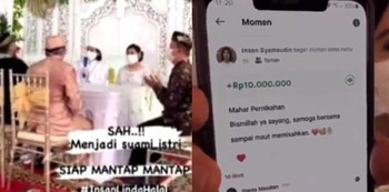 “Coba lihat ini dong, mahar lu, mahar lu. Weh, iya bener, sepuluh juta! Bagi Gopay, lah!” ujar Lukas kepada sang pengantin perempuan.