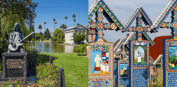 The Merry Cemetery berada di kota Sapanta, Romania. Di dalamnya terdapat lebih dari 600 nisan berbentuk salib kayu yang dicat warna-warni dan dihias dengan lukisan yang menggambarkan kisah hidup, rahasia, atau saat-saat terakhir mendiang yang ditempatkan di masing-masing makam.