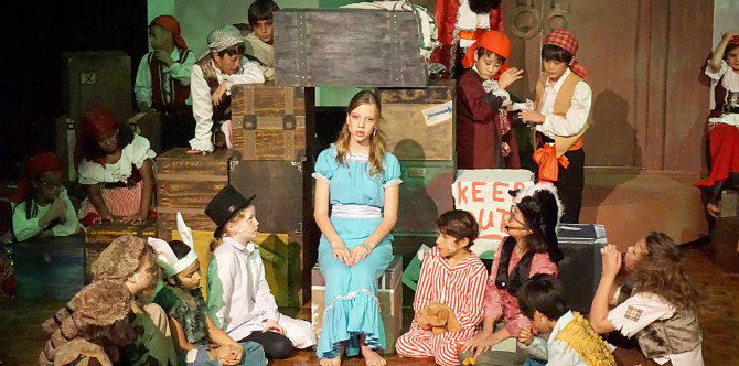 Siswa kelas 1-5 mementaskan opera sekolah berjudul Peter Pan