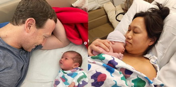 Pada slide foto berikutnya, Mark juga membagikan foto sang istri sedang memeluk putri mereka yang baru saja lahir.