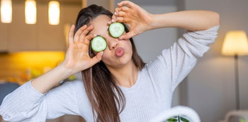 Mentimun yang biasa digunakan sebagai penyegar alami memberikan sensasi dingin ketika diaplikasikan ke bawah mata sehingga membuat mata lebih segar. Selain itu, mentimun juga dapat membantu menghidrasi area bawah mata sehingga lebih halus.