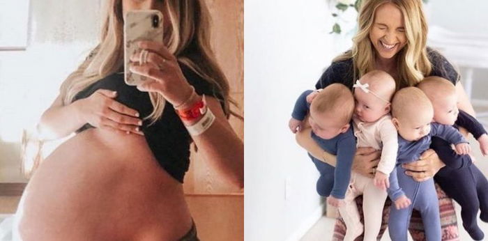 “Saat tengah hamil dan setelah melahirkan! Aku membawa empat bayi ini di dalam kandungan selama 30 minggu 4 hari. Kini, mereka sudah berusia 30 minggu 4 hari juga setelah dilahirkan,” tulis Lindsay dalam akun Instagram-nya.