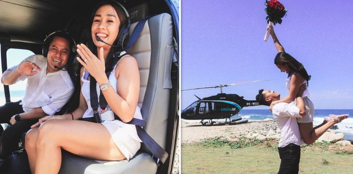 Ada yang unik dari cara kekasih Putri Indonesia 2002 ini melamar. Lelaki bernama lengkap Aldico Sapardan melamar Melanie dari atas udara ketika menaiki helikopter.