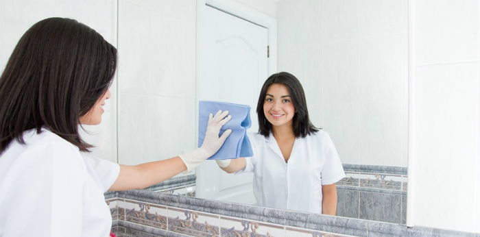 Membersihkan kamar mandi dengan obat kumur.