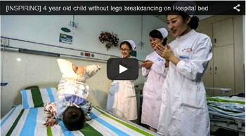 Tak memiliki kaki bukan menjadi halangan untuk menari. Ketika musik diperdengarkan, lihatlah betapa lincah dan bahagianya ia menari.