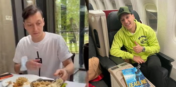 Ozil membagikan momennya duduk di pesawat saat menuju ke Indonesia. Salah satu pemain sepak bola terpopuler di dunia itu terlihat keren dengan hoodie hijau neon.