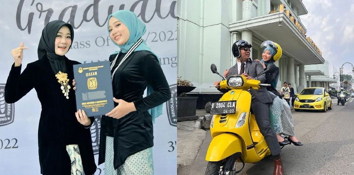 Terlihat Zara yang masih memakai kebaya lengkap pasca acara wisuda dibonceng oleh sang Ayah. Duduk miring karena memakai kain songket, Zara memeluk erat papanya sambil berbincang di sepanjang perjalanan.