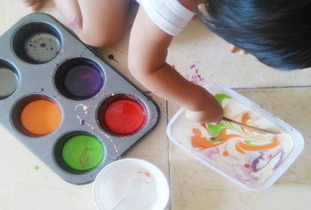 - Ajak anak bermain dengan pasir, lumpur, air, krim cukur, slime, tepung jagung, waterbeads, kacang-kacang kering, dll. Sediakan berbagai wadah, alat-alat dapur, dan mainan kecil sebagai alat eksplorasi.