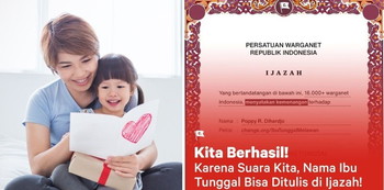 Berkat Petisi Online yang diinisiasi oleh salah seorang single mom, nama ibu tunggal di ijazah kini bisa dicantumkan. Adalah Poppy R. Dihardjo, seorang ibu yang pertama kali membuat petisi agar namanya serta ibu tunggal lain bisa tercantum di ijazah anak. Sebab, selama ini hanya nama ayah yang seringkali tercantum dalam ijazah.