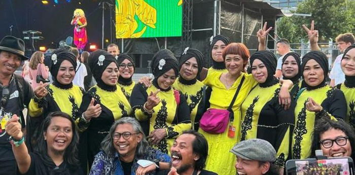 Grup kasidah Nasida Ria jadi band pembuka di acara Documenta Fifteen. Mereka pun membagikan foto sedang melakukan check sound di depan bule-bule. Menurut uanggahannya, banyak penonton yang antusias, lo.