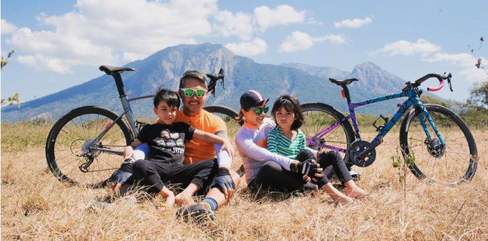 Anak-anak Nirina Zubir dan suami turut menemani mereka bersepeda Jakarta-Bali